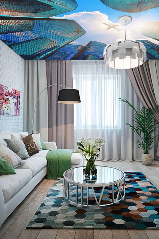 Фотопечать - это нанесение любого изображения на поверхность натяжного потолка при помощи специального широкоформатного принтера. Подобрав правильный рисунок можно сделать свою комнату эксклюзивной. Наша фантазия поистине безгранична! Потолки с фотопечатью позволяют раздвинуть рамки привычного в интерьере и ограничиться только фантазией.